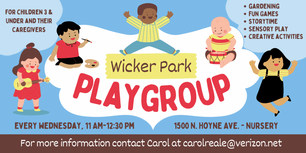 | Playgroups are awesome! Getting little ones together to play is a wonderful way to help kids make friends, build trust, and give them interactive experiences: musical, sensory, artistic, storytelling, fun games, and even gardening! And a weekly get together is also a great way for parents and caregivers become part of a community with opportunities to share ideas and support one another! If you’re a caregiver looking for a fun way to get out and interact then we invite you to join us on for our new Wicker Park playgroup on Wednesdays, from 11am-12:30pm, to be held in the nursery at Wicker Park Lutheran Church! For more information and to get updates about this playgroup, please click below and we’ll be in touch! |